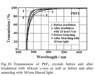 Lead Fluoride - PbF₂ is a highly effective gamma-ray absorber as a result of its high density, fast decay time, and a high radiation hardness. Being a Cherenkov radiator, it dose not produce as much